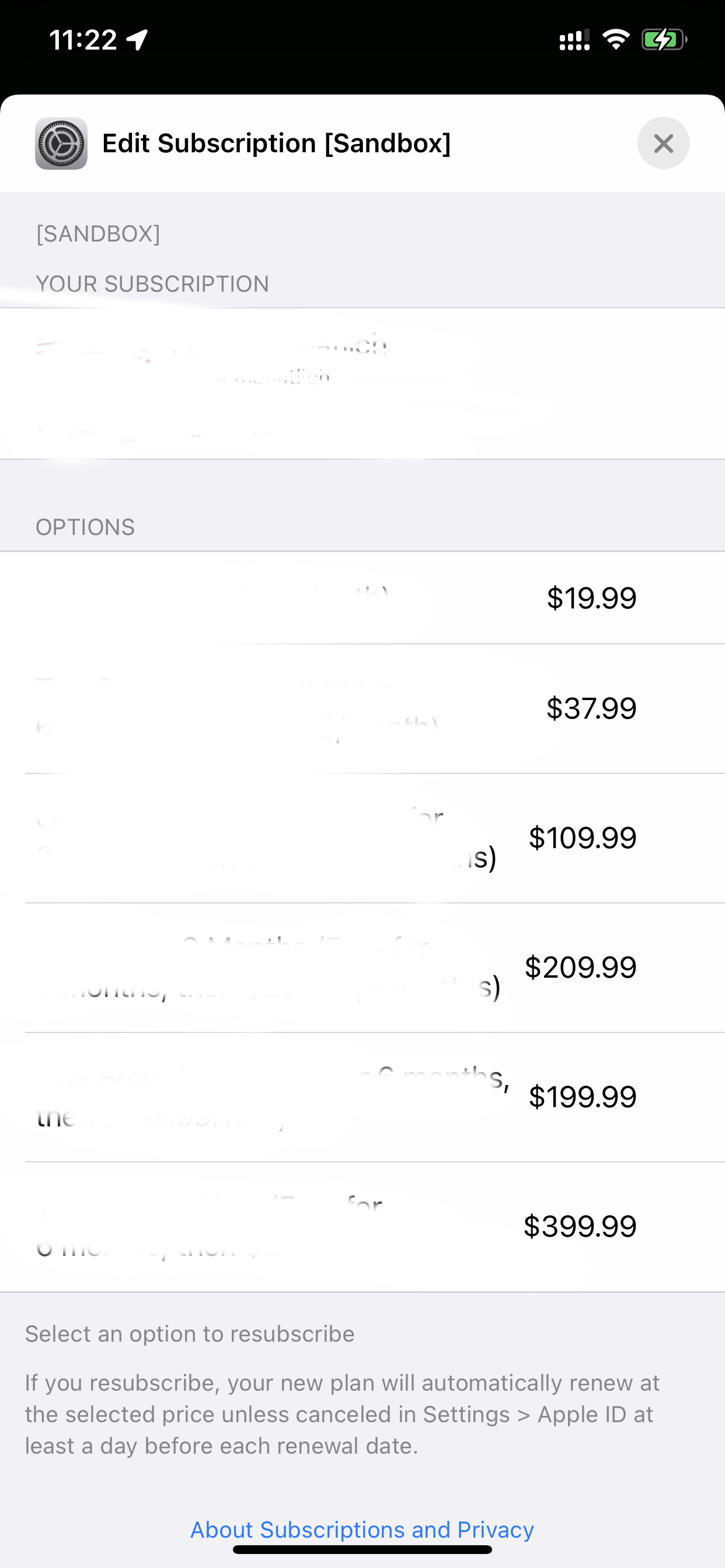 I'm using showManageSubscriptions to open Subscription Management Sheet like this, but cannot exit by tapping to X button ( only exit by pull down sheet )